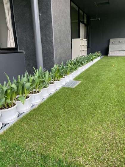 屋外グラウンドの脇にはチューリップの苗が置かれています。始業式までにはきれいな花を咲かせてもらいたいですね。