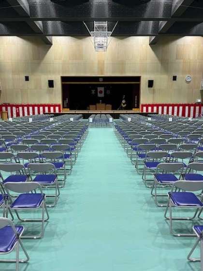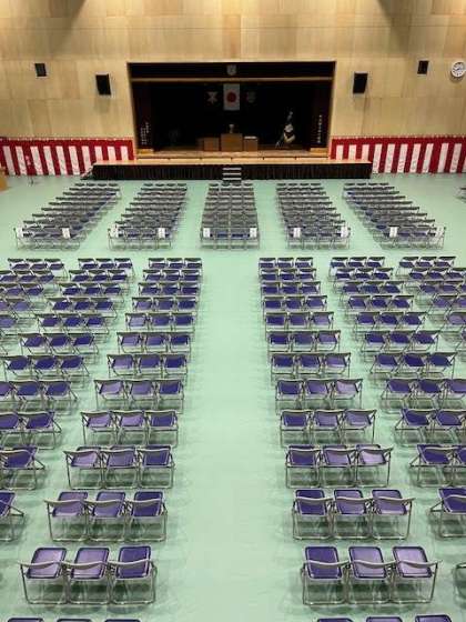 本日、体育館の設営を行いました。新入生を迎え入れる準備が着々と進んでいます。
