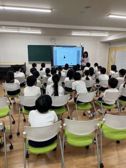養護教諭の先生のお話の後、身長と体重を測定しました。