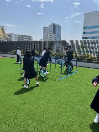 昼休みに屋内グラウンドではドッヂボールなどのボールを使った遊び、屋上グランドでは一輪車で遊んでる人を多く見かけました。