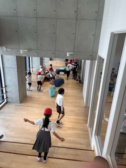 校舎内にはワークスペースがあらゆる場所に設置されていて、低学年の子どもたちを中心ににぎわっていました。