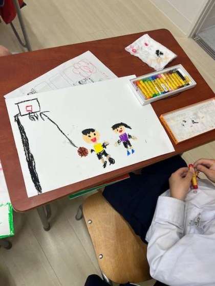 2年生の授業では、「好きなことをしている自分を描く」ことに取り組んでいました。