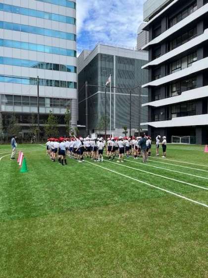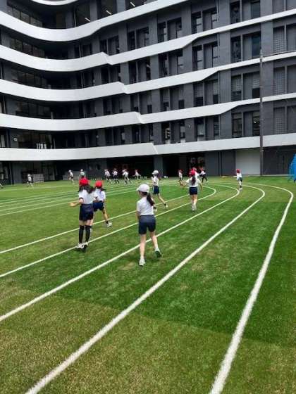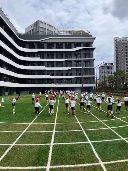 屋外グラウンドでの4年生体育の様子です。
