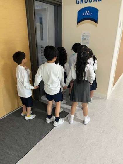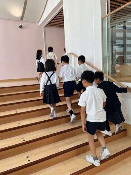 3時間目、2年生が1年生の手をひいて校舎内を歩いていました。