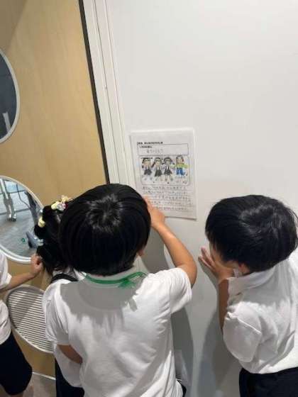 2年生は各教室に1年生を案内し、書いている内容を読んでくれていました。1年生も一生懸命聞いていました。