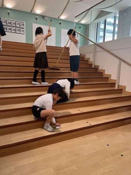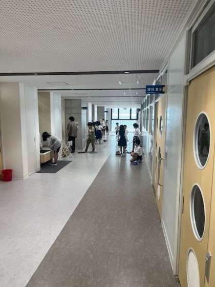新しくきれいな学校がいつまでも続くように、みんな一生懸命です。