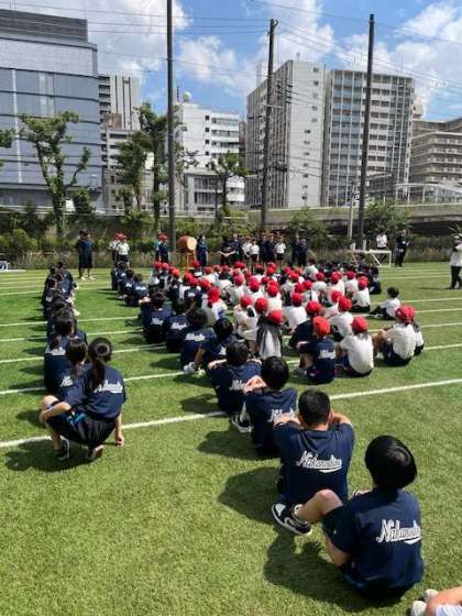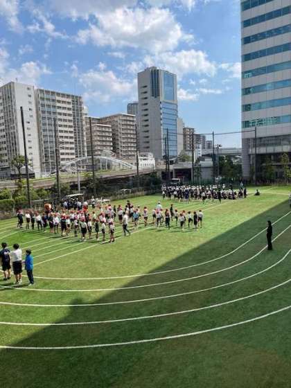 写真で間を空けて整列しているのは、4年生より下の下級生が並ぶ場所を空けているからです。先輩達が手本となり、学校全体を盛り上げてもらいたいですね。