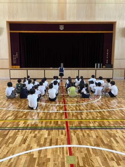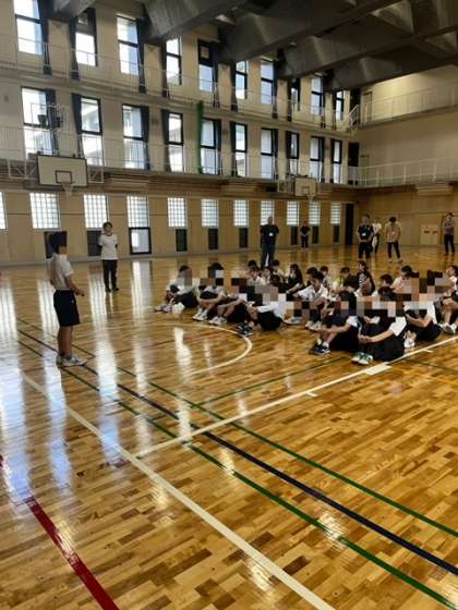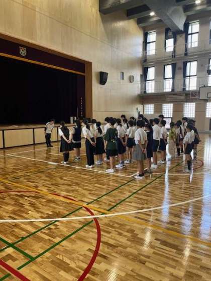 始業前の体育館に運動会実行委員が集合し、解散式を行いました。