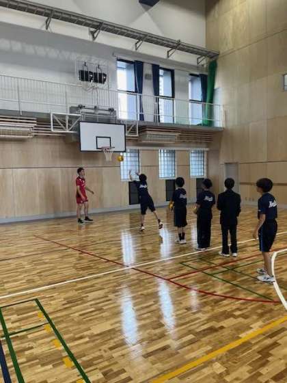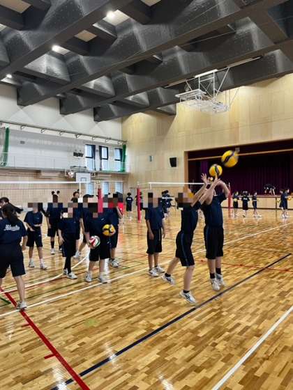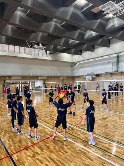パスがだんだんと上達してきました。4グループで競っています。