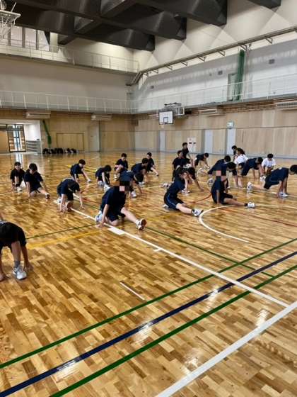 今日の放課後、中学校の部活動の体験活動が始まりました。総合スポーツ部ではウォーミングアップ、ストレッチの後、ラダートレーニングを行いました。全てのスポーツに通ずる基礎的な運動のみでしたが、楽しみながら体を動かしていました。明日からは種目に分かれて活動をします。