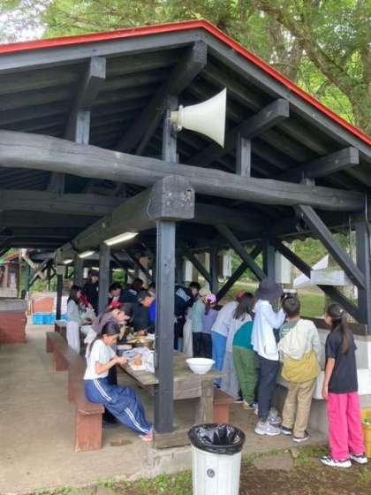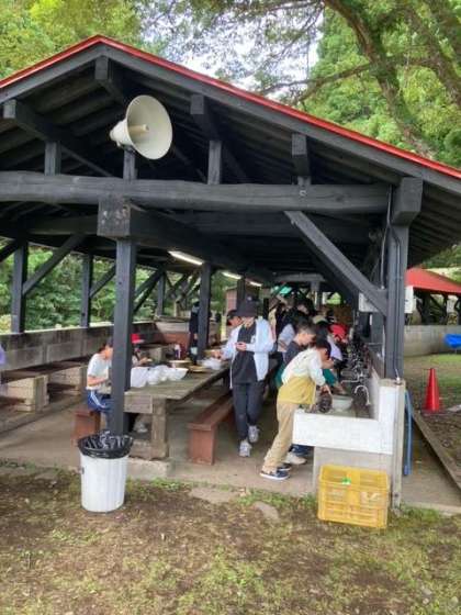 いよいよ飯ごう炊さんです。 班に分かれてカレーとご飯を作ってます!