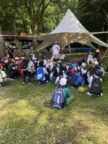 飯ごう炊さんが終了し、体育館に移動します。
