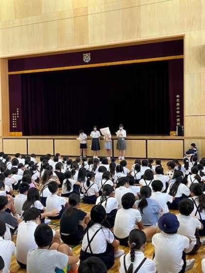 今日は委員会からの連絡事項がありました。文化委員会からは図書の貸出について、健康委員会からはスリッパを整えることができるようになってきたことと、夏のチャレンジウィークについてです。