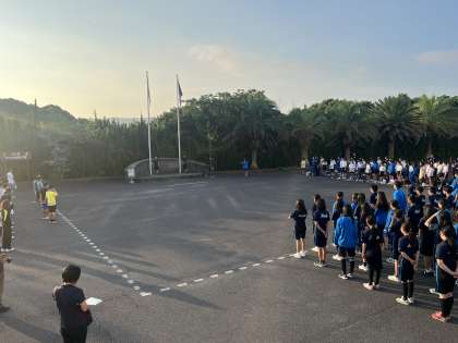 朝の集いは、本校の生徒が司会や国旗の掲揚を担当しました。