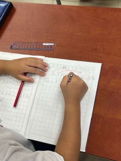実際に問題解決方法をペアで交流しなが考える場面では、お互いのノートを見せ合いながら学びを深めました。