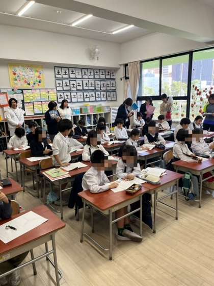3年生の国語では、「いろいろなつたえ方」という単元を勉強しています。情報を伝えるツールはたくさんありますが、授業ではピクトグラムに込められた思いについて学びました。今回の学びは、3年生のコアプロジェクトのテーマである「すべての人にやさしい中之島」へと発展的に繋がっていきます。