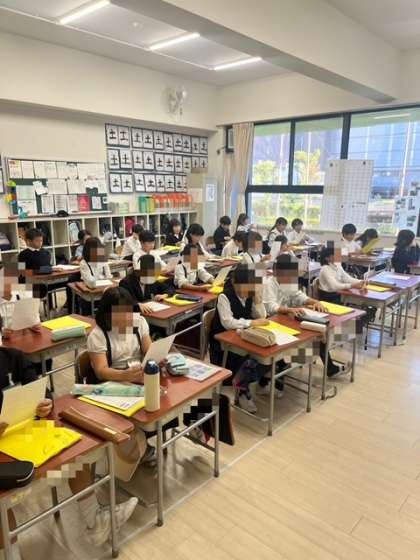 職員室前に校歌が聞こえると思い、教室をのぞくと、3年生が楽譜を片手に練習をしていました。一週間前に初めて聞いたとは思えない歌声で驚きでした。全校児童生徒が揃ったときにどんな美しいハーモニーを奏でてくれるのでしょうか。