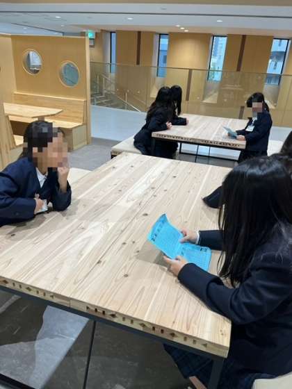 今日の昼休み、ふと職員室前のワークスペースを見ると2年生と8年生がベンチに座っていました。
