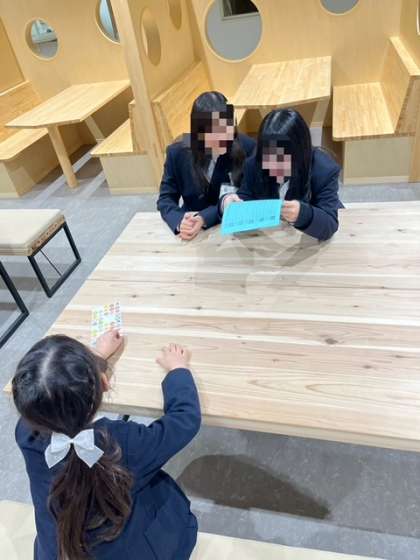 2年生が「九九名人カード」なるものを持っていて、九九を言えたらシールがもらえるというもの。暗記した九九を8年生が確認しながら聞いてあげていました。小中一貫校の醍醐味が詰まったワンシーンです。