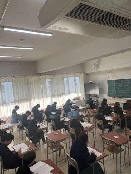 今後の5段階評定に関わる大事なテストで、生徒たちはこの日のために対策をしてきました。3学期が開始して二日目ですが、集中して取り組んでいました。