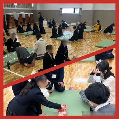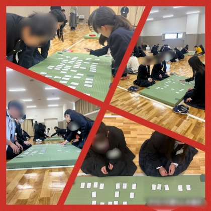 真冬の熱き戦い! 公開日 2025/01/24 更新日 2025/01/24 お知らせ 8年生は格技室で百人一首大会を実施しました。くじでグループを決め、2回戦行い一番たくさん札を取った人が優勝の個人戦です。先生も競技に参加したり読み手として登場したり、かなり白熱していました。 いいね(0)