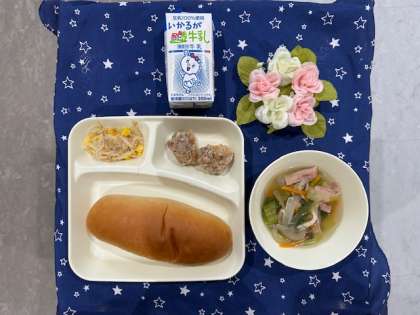 鶏肉のからあげ・ハムと野菜の中華スープ