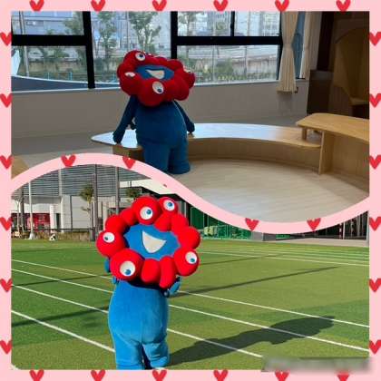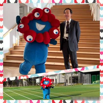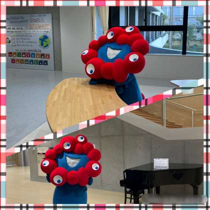 ミャクミャクに自慢の校舎を見学してもらいました。校長先生ともハイ、チーズ!!