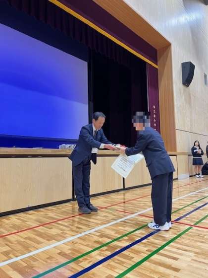 表彰は本校6年生児童が「第70回青少年読書感想文全国コンクール」でサントリー奨励賞を受賞したことによるもの。盾を授与されるときは「おぉ〜」と歓声が沸き起こっていました。大阪市代表として全国コンクールに進み、賞をいただくとは本当にすごいの一言です。