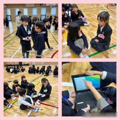 午前中は幼小連携で、中之島ひばり保育園と玉川ひばりこども園の年長さん40名をお招きし、幼小連携を実施しました。