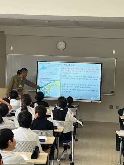 4年生は防災についてこれまで学んできましたが、昨日は中之島地域の水防団の方にお越しいただき、出前授業を実施しました。