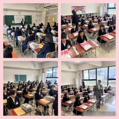 玄関では昨年はなかった入学式の看板が設置され、長蛇の列ができていました。学級発表から教室→体育館へと移動した新入生の表情は一様に晴れやかで、これから始まる中之島での生活に希望を膨らませているようでした。