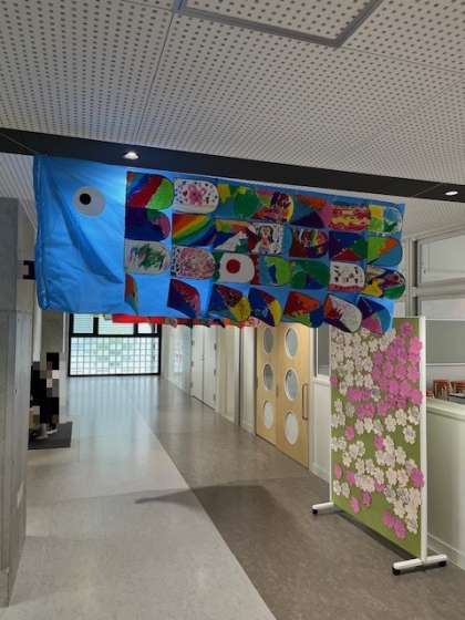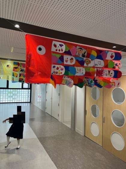 校舎内を彩る掲示物! 公開日 2025/05/02 更新日 2025/05/02 お知らせ 1学期が始まって一か月近くが経ち、校舎内は児童生徒の作品が展示されています。 1年生の教室前廊下にはこいのぼりが泳いでいます。子どもたちが「うろこ」の部分をカラフルに色付けしました。他の学年のフロアにも学習の成果が飾られています。ぜひ、14日の学習懇談でご覧ください。 いいね(0)