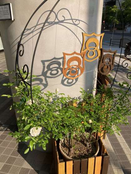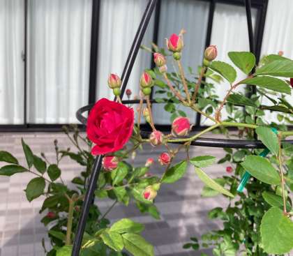 北区の花がバラということで昨年植えたつるバラのサマースノーと紅玉。
