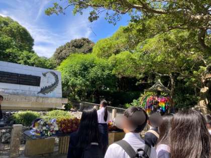 ひめゆりの塔の前で平和祈念セレモニーを行いました。