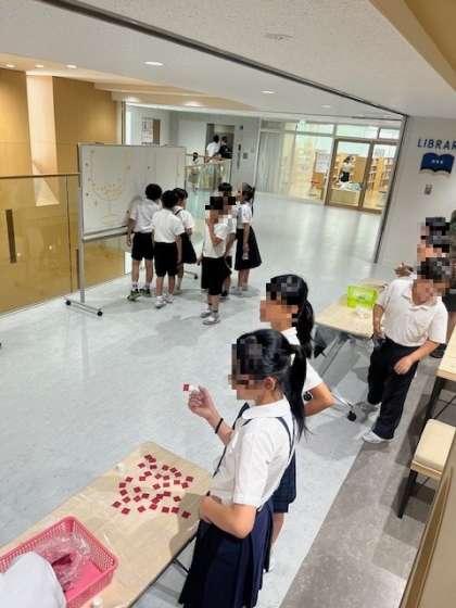 キレイキレイ週間! 公開日 2025/07/07 更新日 2025/07/07 お知らせ 今週は給食をもっと衛生的にということで、「キレイキレイ週間」と銘打った活動を、健康委員会が行っています。昼休みの職員室前ワークスペースでは、ハンカチ所持をチェックしていました。ハンカチを持っていればシールをもらい、ホワイトボードの玉入れに貼ります。玉入れは何と運動会の団対抗です。真夏の熱き戦いが始まりました。 明日からは登校時に受付があります。ハンカチを忘れず持参し、衛生的に過ごしてもらいたいですね。 いいね(0)