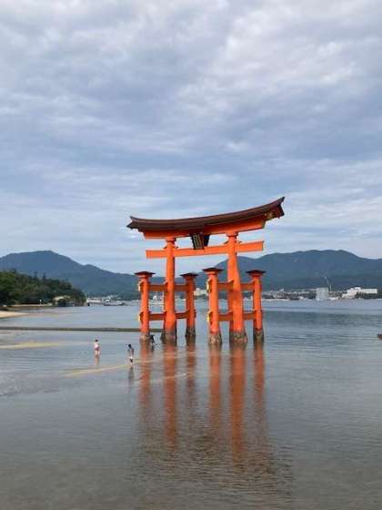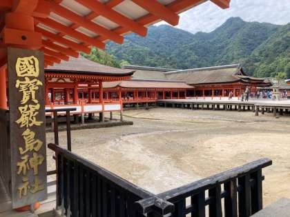 厳島神社の見学を終えた後、商店街でのお土産物購入の班活動を行なっています。