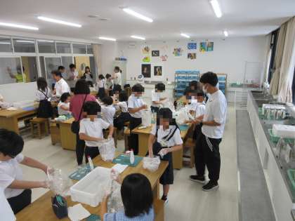 ユニークな材料で表現活動! 公開日 2025/10/03 更新日 2025/10/03 お知らせ 4年生は図工の時間に液体粘土を使った作品づくりに取り組んでいました。 チューブから袋に液体粘土を出し、手触りを確認。初めての感触に「ぷにぷに」「トルコアイスみたい」と歓声が上がっていました。布に吸わせて思い思いの形にして色づけをします。どんな作品に仕上がるのでしょうか。 いいね(0)
