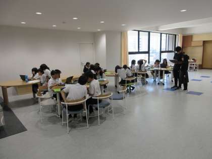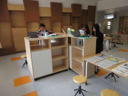 ワークスペースの風景 公開日 2025/10/21 更新日 2025/10/21 お知らせ 1枚目は5階です。9年生はコア・プロジェクトで個人探究に取り組んでいます。個人での調べものがすぐできるように、SDGsに関する本を設置しています。 2枚目は4階で4年生の学習風景です。勾玉型の机を自在に動かすことで、人数に応じたグループ学習がしやすくなっています。 3枚目が2階です。以前は戦争に関する本の展示でしたが、今は食品ロスに関する本が集められています。 いいね(0)