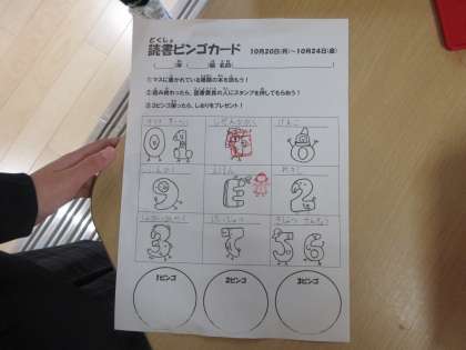読書の秋! 公開日 2025/10/22 更新日 2025/10/22 お知らせ 昼間の気温もずいぶん低くなり、過ごしやすくなってきた今週は「読書週間」です。 20分休憩や昼休憩はたくさんの子どもたちで賑わっています。 図書委員会の企画ではビンゴを実施しています。指定されたジャンルの本を読みスタンプをもらいます。3ビンゴが揃えばしおりをもらえます。読書好きな人も、これから読み始めようと思っている人も、ぜひゲーム感覚でチャレンジし、たくさんの本に親しんでもらいたいです。 いいね(0)