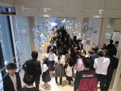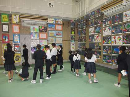 中之島ドリームフェスティバル〜展示見学〜 公開日 2025/10/31 更新日 2025/10/31 お知らせ 午後からはグループ毎に展示見学をしています。 校舎内のいたるところに作品が展示されていて、まるで学校全体が博物館のようです。 いいね(0)