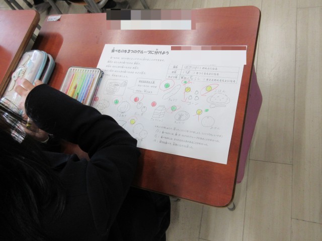 食物を色で仲間分けし、食べ物にはそれぞれの役割があることを学びました。