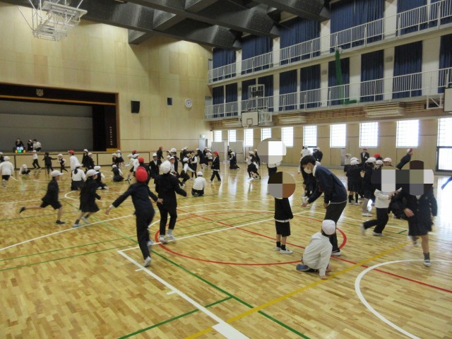 体育館に集まり、ドッヂビーやレンジ鬼をして交流しました。