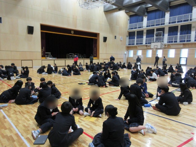 今日の5、6時間目、6年生と8年生が合同で平和学習を行いました。