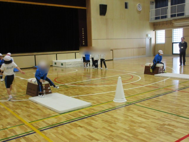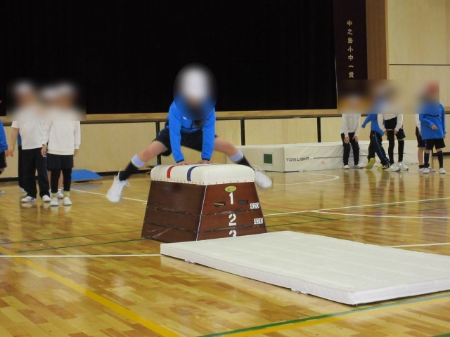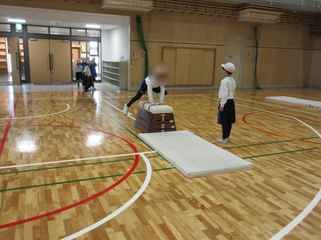 1年生は体育の授業でとびばこに挑戦しています。