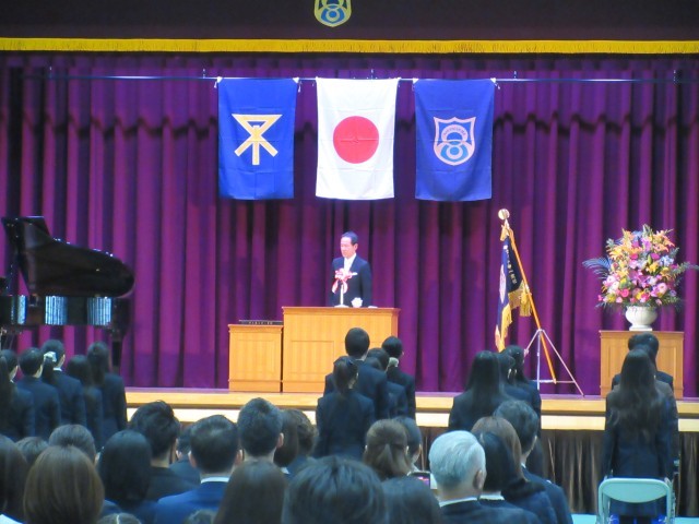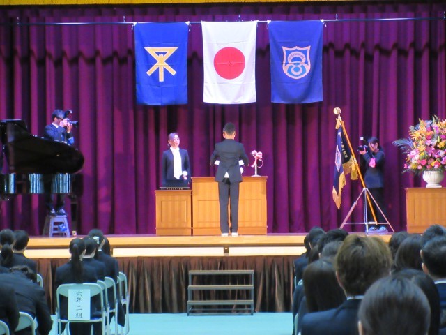 式では担任の先生から名前を呼ばれ返事のあと、中学校生活での抱負やこれまで支えてくださった方への感謝の言葉など、ひとり一人が舞台上で披露しました。