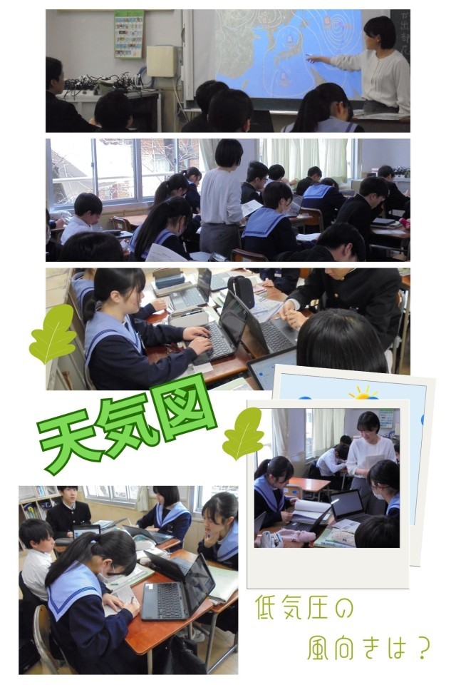 一人では難しい課題でも、班活動での「学び合い」を通して、理解を深めていく姿が印象的でした。授業の最後には、 班の代表者が気象予報士さながらに、 根拠に基づいた今後の天気予想を堂々と発表しました。