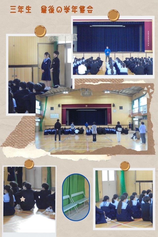 「次回の卒業前最後の学年集会では、誰一人遅れることなく全員で揃おう」という期待が伝えられ、生徒たちは残り少ない中学校生活に向けて、改めて気を引き締めている様子でした。