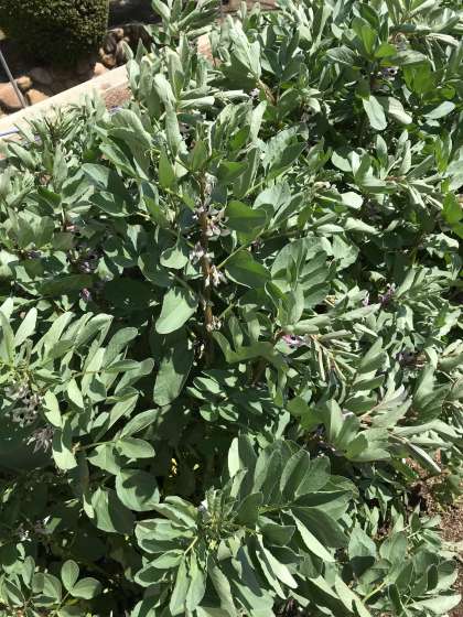学習園のソラマメです。メキメキと成長し、花には虫が止まっています!
