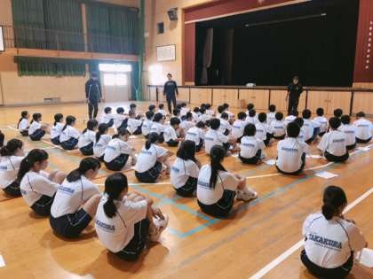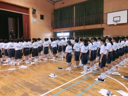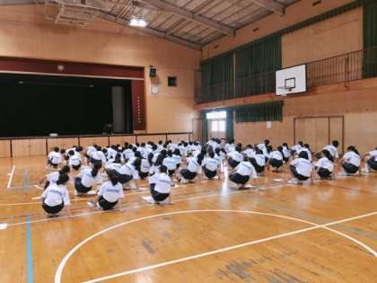 1年生の体育は集団行動です。 方向転換や座り方の練習をしています!
