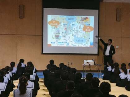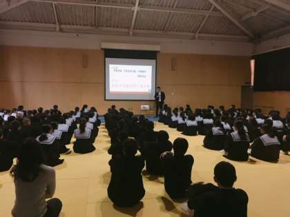 1時間目、格技室にて校外学習の事前学習を行いました。